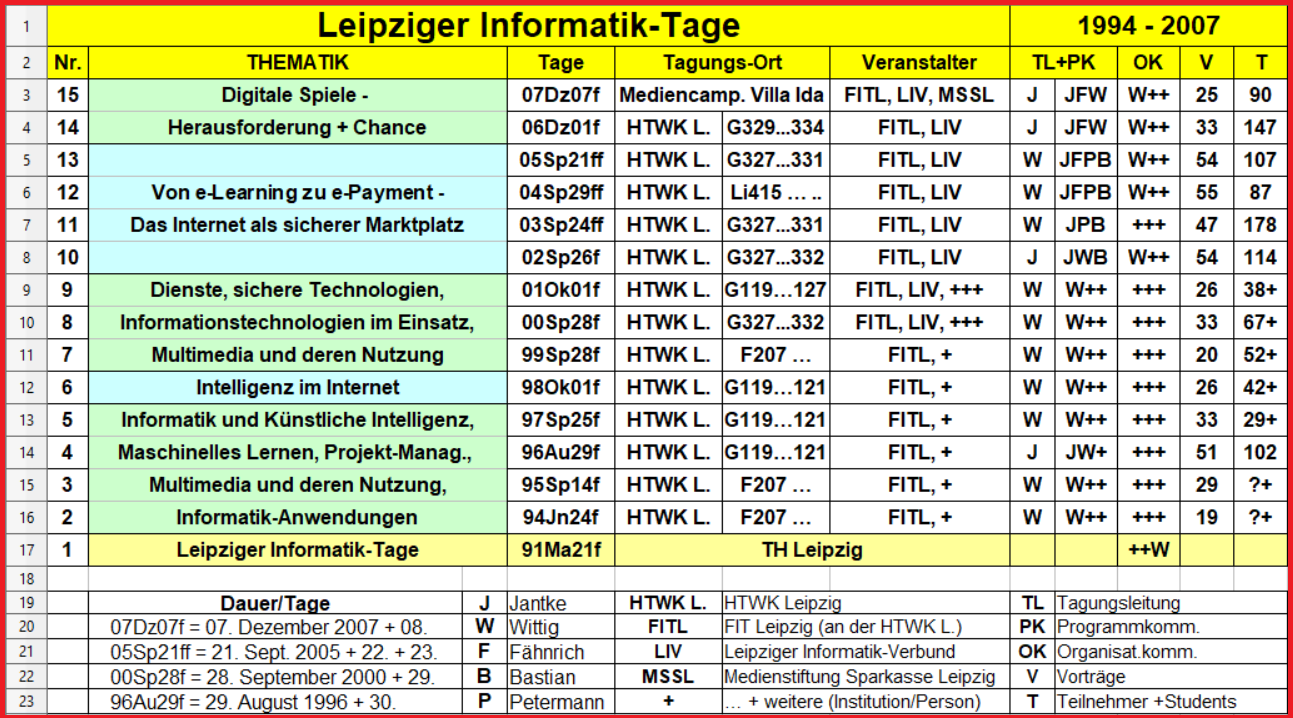 Tabelle - Liste - Lehrveranstaltungen - Grafik - (anim.)